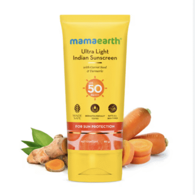 Mamaearth Ultra Light Indian Sunscreen SPF 50 PA++++ With Turmeric & Carrot Seed for Tan Protection