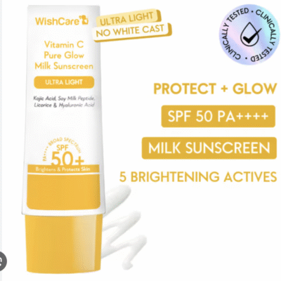Wishcare Vitamin C Sunscreen SPF 50 PA++++ | Pure Glow Milk | Oil Free | No White Cast | 50g