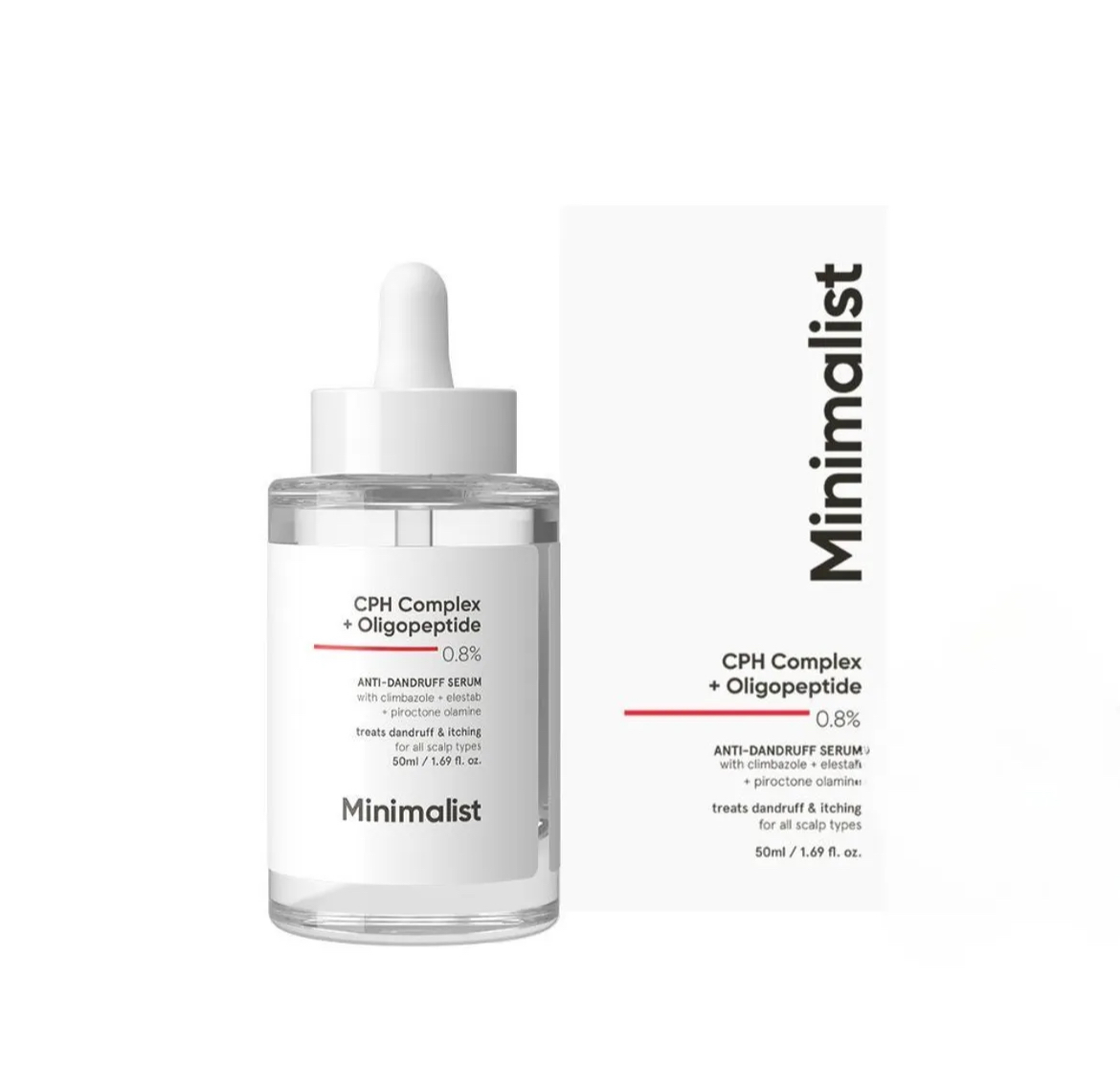 Minimalist Anti-Dandruff hair serum is a comprehensive solution which targets dandruff & itchy scalp. This new technology works at the core with a potent trio of anti-dandruff agents that are proven to tackle the root cause of dandruff by inhibiting the growth of dandruff-causing fungus. This fast-absorbing, non-greasy formula also contains ingredients to control scalp olliness without drying the scalp & ensuring optimal hydration. With consistent use, the serum will provide targeted relief from dandruff, leading to itch free, nourished & healthy scalp.Features: Inhibits Dandruff causing Fungus:Climbazole & Piroctone & Oligopeptide 29 a potent trio of agents tackles the root cause of dandruff. Improves Scalp Health: The presence of Oligopeptide-29, known for its antimicrobial properties, offers a novel approach to scalp health that goes beyond traditional anti-dandruff ingredients Extoliates and unclogs scalp pores: SalicylicAcid is a beta-hydroxy acid known for its gentle exfoliating properties, it helps in removing dead skin cells and unclogging pores on the scalp, providing a fresh and clean feelHow to useApply a few drops on the scalp using the dropper provided and massage thoroughly. Leave for 1 hour & then rinse off with a regular shampoo.IngredientsPropylene Glycol, Glycerin, PEG-12 Dimethicone, XylityIglucoside, Salicylic Acid, Ethyl Lauroyl Arginate HCl, Panthenol, Piroctone Olamine, Climbazole, Hexamidine Diisethionate, Oligopeptide-29, Propanediol Caprylate, Aqua, Hexylene Glycol, Capryloyl Glycine, Phenoxyethanol, Anhydroxylitol, Xylitol,EthylhexylglycerinKey Ingredients: Oligopeptide, Salicylic Acid, Climbazole & Piroctone Olamine and Capryloyl Glycine