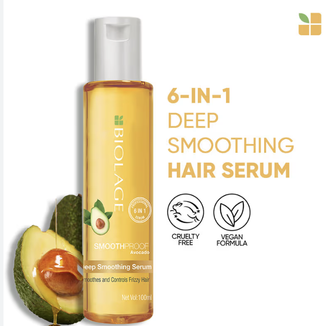 Trusted by Professionals. Biolage SMOOTHPROOF Deep Smoothing 6-in1 Hair Serum is infused with avocado and grape seed oils, this non-sticky formula gently envelops hair to control frizz and seal in smoothness without weighing it down