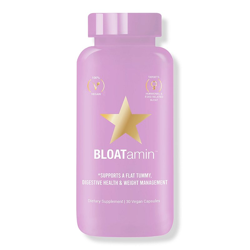 BLOATamin™ is a synergistic blend of 11 herbs and super fruit digestive enzymes that target common food and hormone-related digestive issues including bloating, gas, stomach pain and discomfort. Each vegan capsule is packed with natural plant extracts that are easily recognized by the body to help speed up the breakdown and digestion of foods, while reducing water retention and promoting healthy weight management.HOW TO TAKETake 1-2 capsules(do not exceed 4 capsules a day)Before, duringor after mealsPRO TIP: Don’t like swallowing pills? Open the capsule and pour the contents into your favorite beverage or food.NO MORE FOOD BABIES!Targets hormonal & food-related bloating & gasSupports a healthy digestive systemReduces excess water weight & supports healthy weight managementHelps reduce heartburn & indigestion
