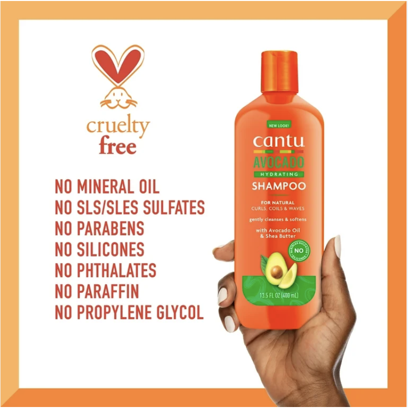 Cantu Avocado Hydrating Shampoo,400mlSay hello to shampoo the superfood way when you use Cantu Avocado Hydrating Shampoo. Enriched with avocado and shea butter, this formula is perfect for infusing your hair with all the nutrients it needs to feel soft, healthy, and hydrated. Enjoy less frizz, smoother strands, and less breakage when you lather your hair with this gentle and nutrient-dense blend of ingredients. Our shampoo focuses on both cleansing and hydrating dry, brittle strands so you can feel as confident as possible. We crafted this shampoo uniquely for curly, coily, and wavy hair, and without harsh ingredients such as mineral oil, sulfates, parabens, silicones, phthalates, paraffin, or propylene glycol.
