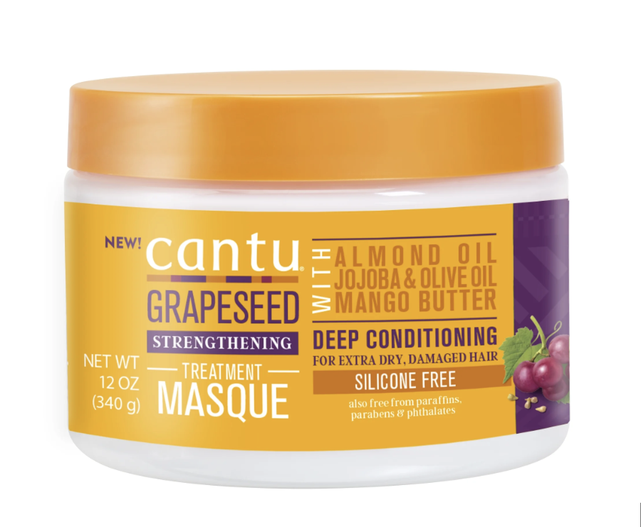 Cantu Grapeseed Strengthening Treatment Mask 340gCantu’s Grapeseed Strengthening Treatment Masque penetrates deeply into the hair shaft for an intense treatment that repairs and replenishes over-processed, damaged hair. Crafted with our signature shea butter formula plus grapeseed, almond, jojoba, and olive oils, the Strengthening Treatment Masque revives curls to reveal healthy, strong strands. The added mango butter enhances your hair’s natural shine, and this sulfate-free treatment masque nourishes extremely dry, damaged hair without the use of harsh chemicals. Allow Cantu’s Grapeseed Strengthening Treatment Masque to restore your hair’s authentic beauty with this new formula created specifically for curly, coily, and wavy hair.