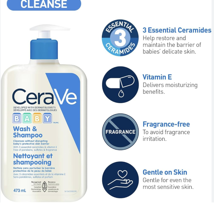 CeraVe BABY Moisturizing Lotion (473ML) and CeraVe Baby Wash & Shampoo (473ML) | Tear-Free Gentle FormulasCeraVe BABY Moisturizing Lotion (473ML) and CeraVe Baby Wash & Shampoo (473ML) | Tear-Free Gentle Formulas