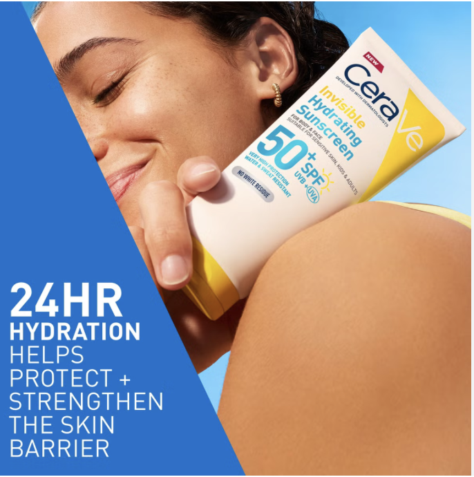 Providing powerful UVA and UVB protection, the CeraVe Invisible Hydrating Sunscreen SPF 50 is a multi-tasking face and body formula for all skin types.