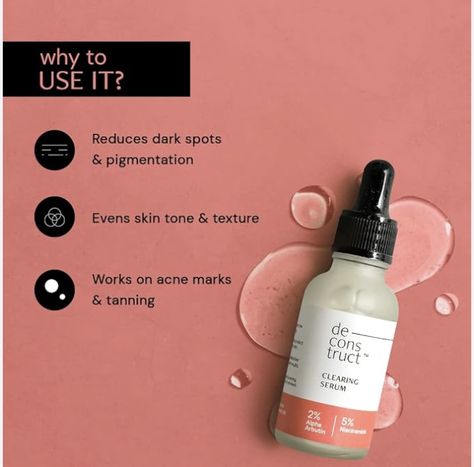 Deconstruct’s Niacinamide & Alpha Arbutin Serum is a multi-benefit beginner-friendly formula that reduces pigmentation, dark spots, acne marks, and tanning. 5% Niacinamide helps improve skin texture and barrier strength, while 2% Alpha Arbutin works to inhibit melanin production and target sun spots and uneven tone. This multi-benefit serum is suitable for oily, sensitive, and combination skin types. Use daily after cleansing for visibly clearer and balanced skin.