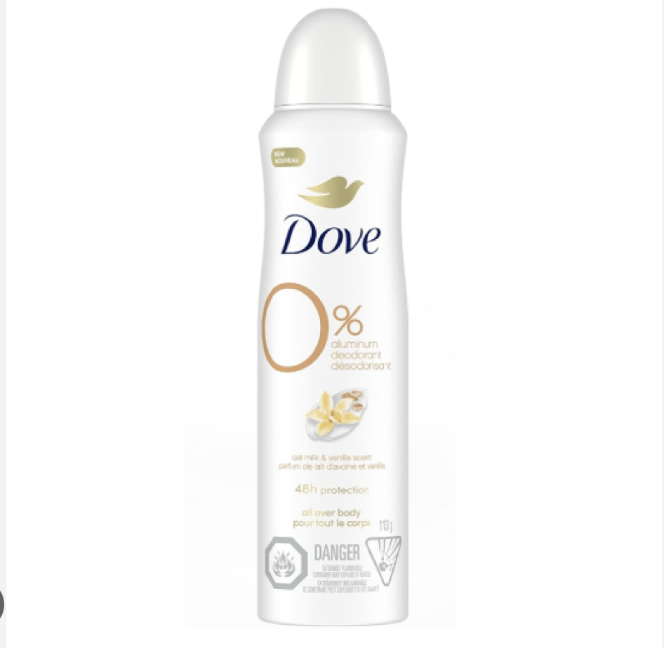 Dove 0% Aluminum Free Deodorant Spray, for 72H Protection, Oat Milk & Vanilla Scent