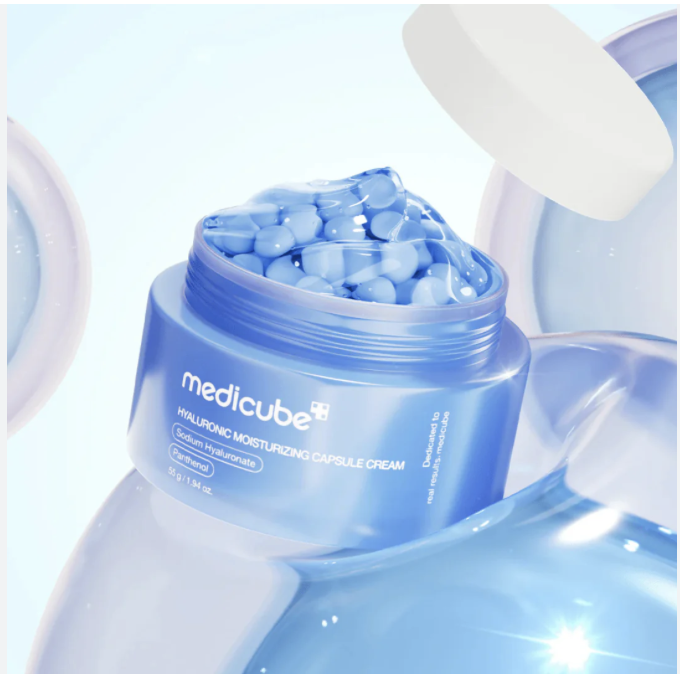 Medicube Hyaluronic Moisturizing Capsule Cream 50g- [Long Lasting Hydration Up To 120 Hours] Powered by ultra-low molecular Hyaluronic Acid capsules to deliver deep hydration to the skin, providing long-lasting moisture and visibly plump skin.