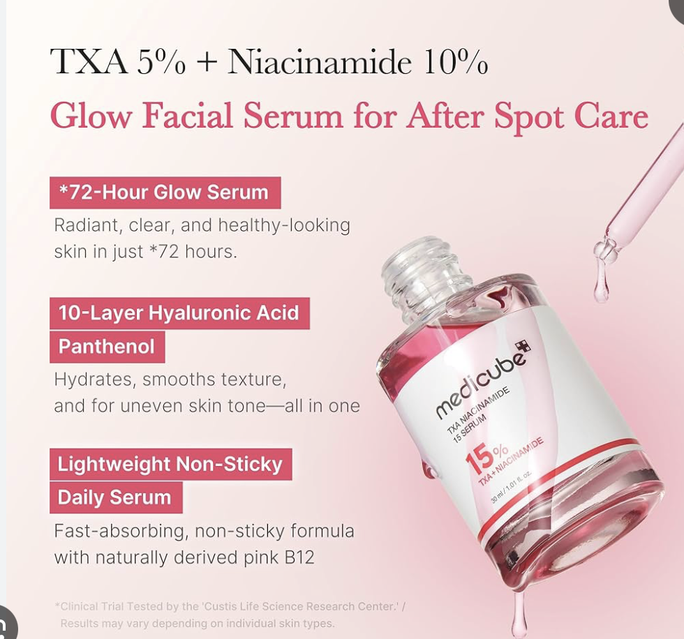 medicube TXA+Niacinamide 15% Glow Facial Serum for After Spot Care | All-in-One Daily Korean Skincare | Uneven Skin Tone, Texture, and Hydration Care | High-Potency Tranexamic Acid 5%- All-in-One 72-Hour Glow Serum – Uneven skin tone, hydration, and skin texture care with 10-layer hyaluronic acid, Panthenol, and Betaine. *Clinical Trial Tested by the ‘Custis Life Science Research Center.’ / Results may vary depending on individual skin types.