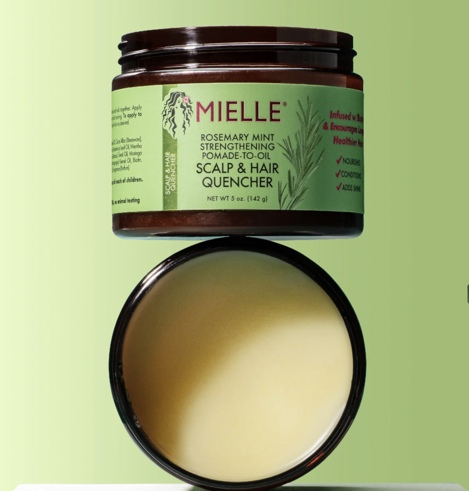 Mielle’s Rosemary Mint Pomade-to-Oil Scalp & Hair Quencher is a conditioning hairdress that transforms from a pomade to an oil. It quenches the scalp, moisturizes dry, thirsty hair, and helpsprotect against dryness. This hairdress smoothes flyaways and adds shine for soft, manageable hair. For curly, thermally straightened and protective styles.