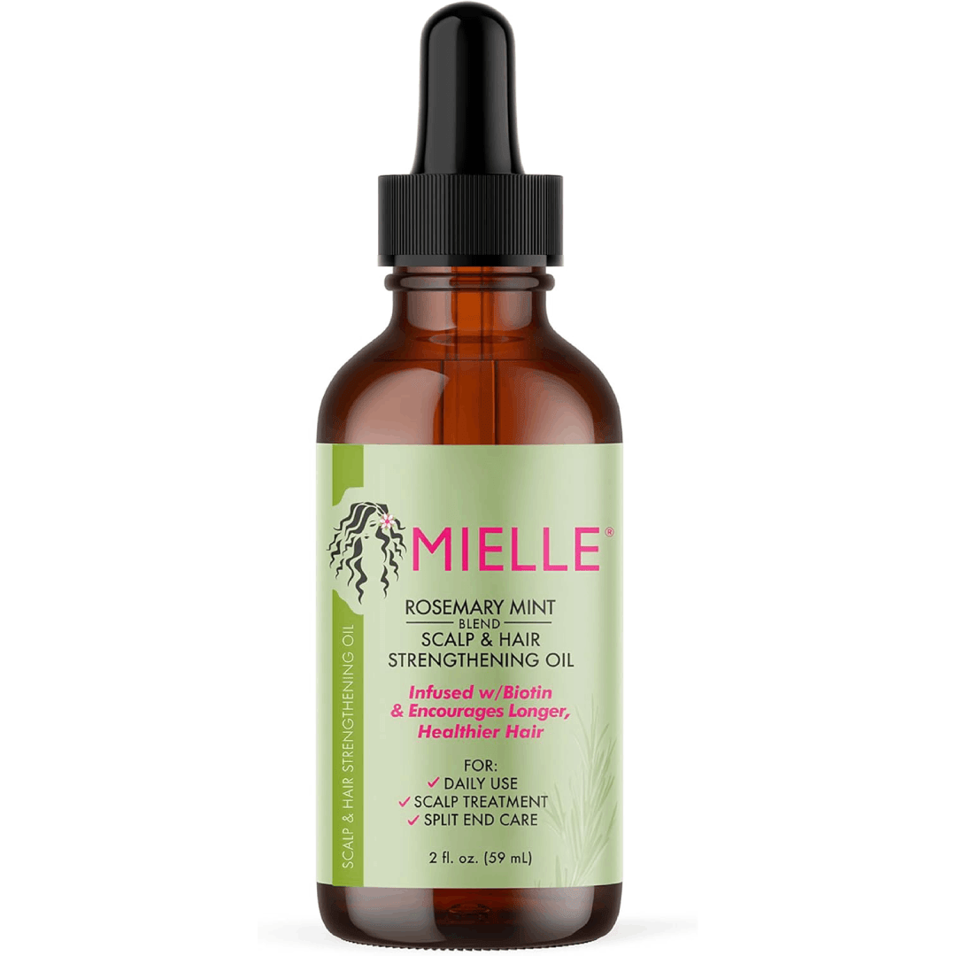 Mielle Rosemary Mint Scalp & Hair Strengthening OilOur Rosemary Mint scalp and hair oil is a nutrient-rich, intensive formula meant to help you address your hair concerns. From nourishing hair follicles, smoothing split ends and help with dry scalp, this hair oil uses natural, organic ingredients and essential oils to provide the care your hair deserves. Use it on protective styles, including braids and weaves, and enjoy its fresh, invigorating scent during your next hot oil treatment. Benefits: Infused with Biotin Use for daily hair care or specialized scalp treatments Features more than 30 essential oils and extracts Helps improve length retention Conditions dry scalp Smooths split endsFormulated without: No Parabens, No Sulfates, No Paraffins, No Mineral Oil, No DEA, No Animal TestingFormulated for all hair types and textures | Safe for chemically treated hair Suitable forFor all hair types How to useScalp TreatmentSection hair into 4 parts exposing scalp. Apply a small amount of oil to scalp, massage oil in with fingers and comb through to ends of hair. Leave in and style as desired.Daily UseApply a small amount to scalp and comb through to ends.Split End CareApply oil to ends of hair, place a processing cap on head and leave on for 10 minutes. Rinse and proceed with shampooing. IngredientsGlycine Soja (Soybean) Oil, Ricinus Communis (Castor) Seed Oil, Rosmarinus Officinalis (Rosemary) Leaf Oil, Simmondsia Chinensis (Jojoba) Seed Oil, Mentha Piperita (Peppermint) Oil, Eucalyptus Globolus (Eucalyptus) Leaf Oil, Menthol, Melalueca Alternifolia (Tea Tree) Leaf Oil, Cocos Nucifera (Coconut) Oil, Equisetum Arvense (Horsetail) Extract, Aloe Barbadensis Extract, Lavandula Angustifolia (Lavender) Oil, Triticum Vulgare (Wheat) Germ Oil, Carthamus Tinctorius (Safflower) Seed Oil, Oenothera Biennis (Evening Primrose) Oil, Vitis Vinifera (Grape) Seed Oil, Benzyl Nicotinate, Prunus Amygdalus Dulcis (Sweet Almond) Oil, Oryza Sativa (Rice) Bran Oil, Tocopheryl Acetate, Biotin, Arctium Lappa (Burdock) Root Extract, Glycerin, Apium Graveolens (Celery) Seed Extract, Cholecalciferol (Vitamin D), Ascorbic Acid, Ocimum, Basilicum (Basil) Oil, Pogostemon Cablin (Patchouli) Oil, Salvia Officinalis (Sage) Oil, Silica, Urtica Dioica (Nettle) Extract
