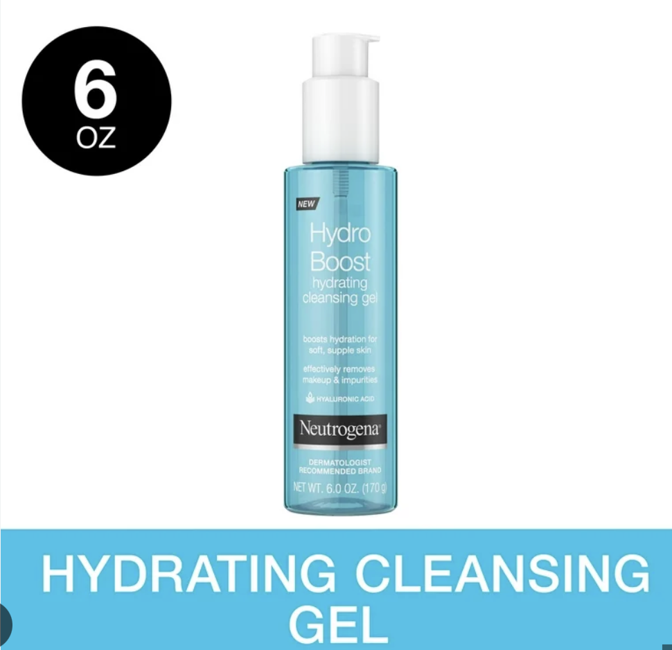 - Bottle of Neutrogena Hydro Boost Daily Hydrating Facial Cleansing Gel with hyaluronic acid