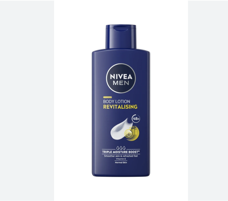 Nivea Men Body Lotion Revitalising 400ml has a non-greasy formula, enriched with Hydra IQ and vitamin E, to give your skin an extra burst of moisture and freshness.