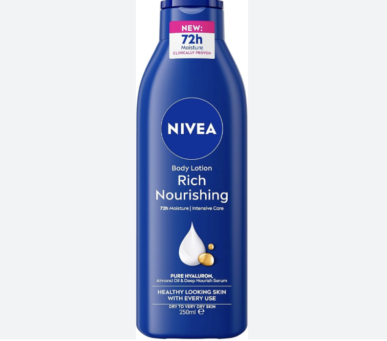 NIVEA Rich Nourishing Body Lotion (250ml), Rich 72H Hydration NIVEA Moisturiser for Dry Skin Made with Deep Moisture Serum and Almond Oil, Intensive Hydration NIVEA Body Lotion 400ml- Spain