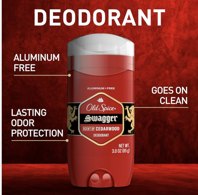 Old Spice Aluminum Free Deodorant for Men, 24/7 Odor Protection, 24/7 Freshness & Lasting Scent, Swagger with Cedarwood Scent