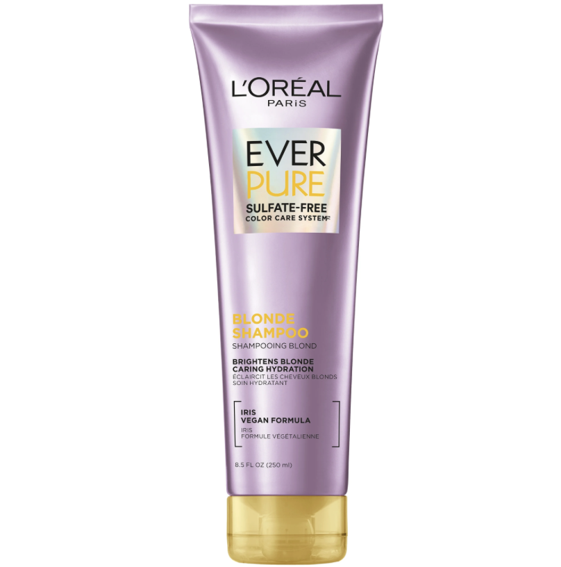 • L’Oreal Paris EverPure Blonde Shampoo is a sulfate-free shampoo that brightens blonde hair and cares for over-processed hair with intense hydration.
