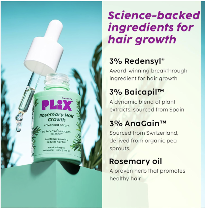 Plix – THE PLANT FIX Rosemary Hair Growth Serum with 3% Redensyl, 4% AnaGain, 3% Baicapil, 30 ml | Stimulates Hair Growth, Increase Hair Density & Thickens Hair | For Men & Women