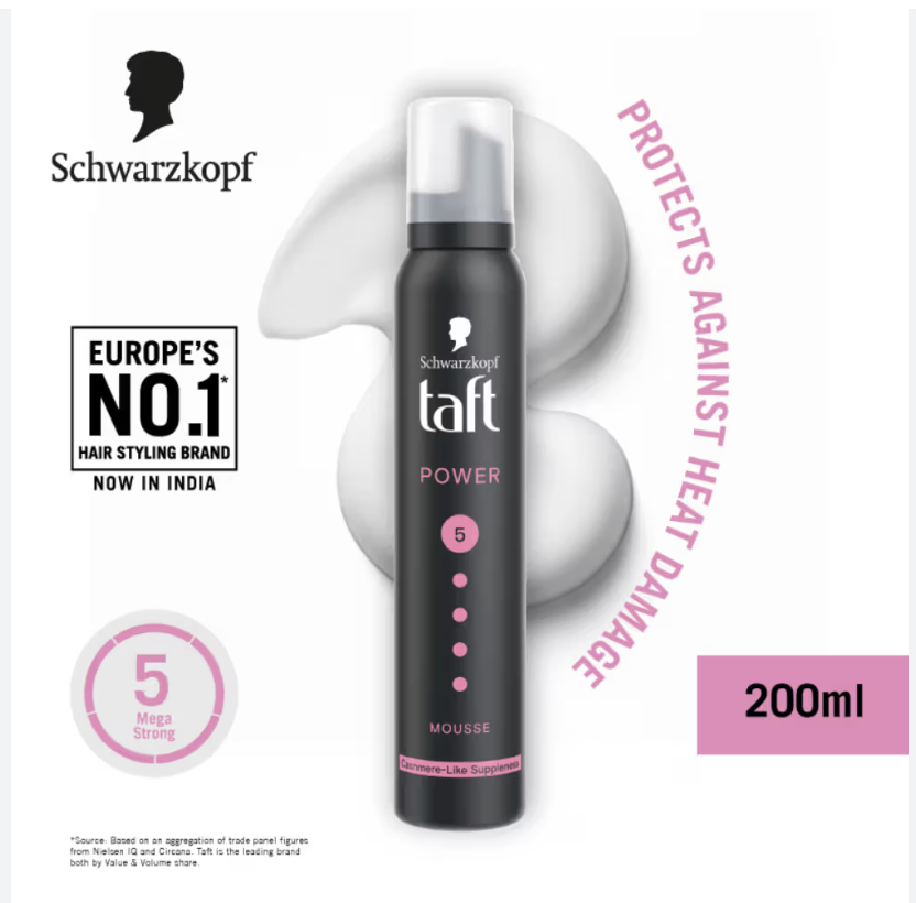Schwarzkopf TAFT Power Hold 5 Hair Mousse To Controls Frizz, Lasts 24 Hours With No Stickiness