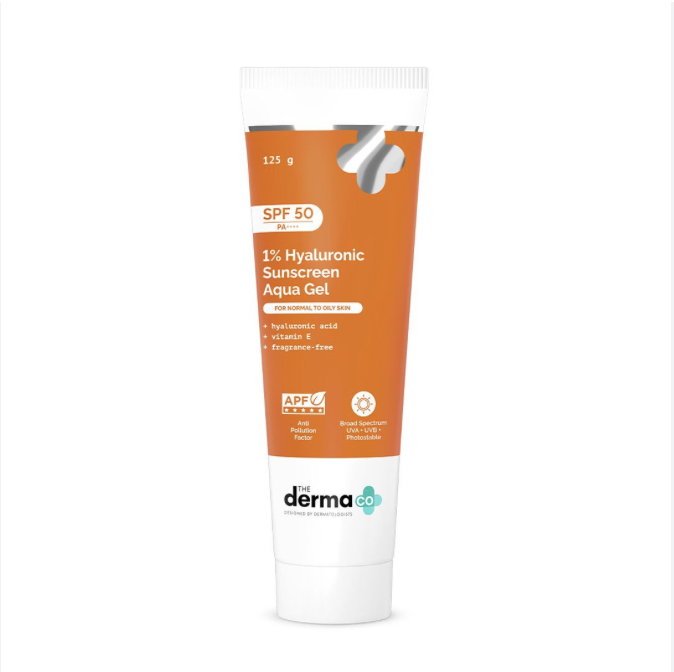 The Derma Co 1% Hyaluronic Sunscreen Aqua Gel SPF 50 PA++++ | Hydrating, Lightweight & Non-Greasy | No White Cast | Broad Spectrum & Blue Light Protection | Clinically Tested 125g