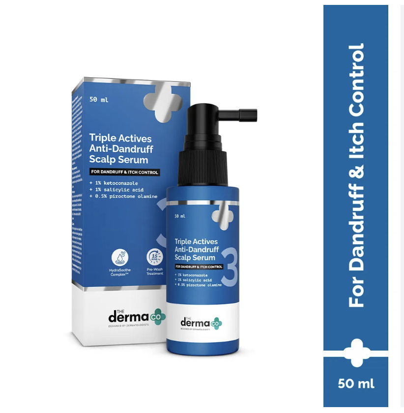 The Derma Co. Triple Actives Anti-Dandruff Scalp Serum (50 ml) Power of 3 Actives | Fights Dandruff & Flakes | Soothes Itchiness & Irritation | Defends Against Recurrence- Removes Dandruff & Flakes Clinically proven actives like Ketoconazole and Salicylic Acid work deep at the roots to eliminate stubborn dandruff, clear visible flakes, and prevent their return—leaving your scalp fresh, clean, and balanced.