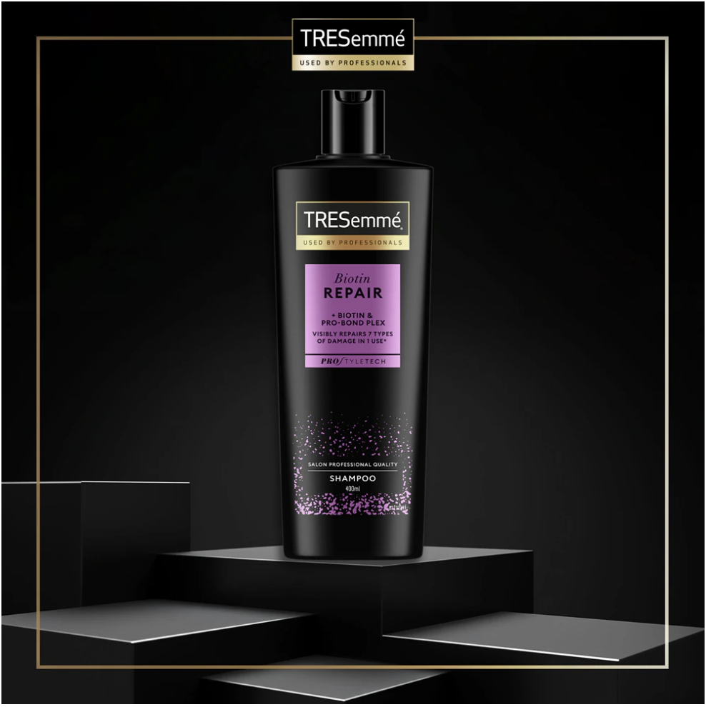 In order to keep your hair healthy, shiny and vibrant, it’s important to give it the proper care. And that starts with regular hair washing. A shampoo from TRESemméBiotin Repair will help to effectively remove any dirt, grease and styling and cosmetic product residues from the hair and scalp. It gives you a feeling of freshness and cleanliness, and ideally prepares your hair and scalp for further care while supporting the effects of the active ingredients it contains.