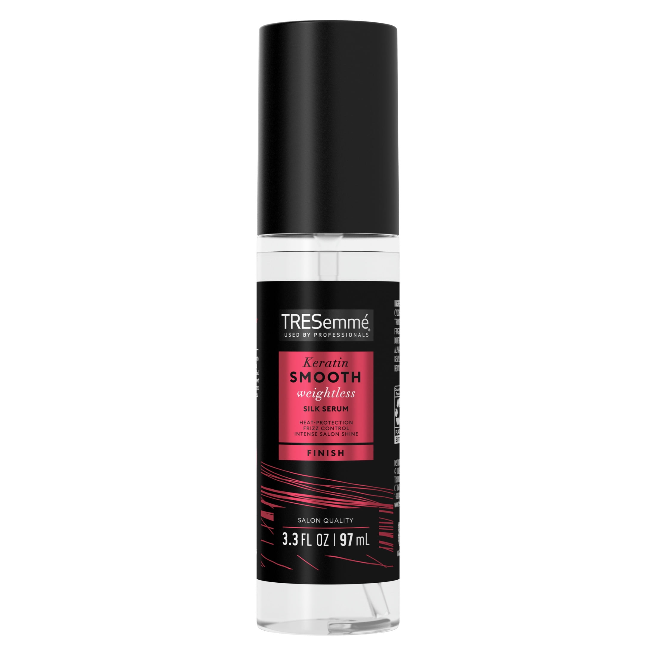 Tresemme Weightless Silk Serum Keratin Smooth Heat Protection and Frizz Control, 3.3 oz. Ready for sleeker, straighter hair—with one easy-to-use product? Reach your shiny, smooth hair goals with our Tresemme Keratin Smooth Blowout Silk Serum. Infused with keratin, our powerful serum instantly smooths and transforms your hair for a sleek and shiny finish while fighting frizz. This weightless, professional-quality serum also protects your hair from heat up to 450°F, so you can enjoy a silky-smooth blowout without heat damage. Perfect your Smooth Blowout look in 3 easy steps. Prep strands by washing and conditioning your hair with Keratin Smooth Blowout Shampoo and Conditioner, then style with Keratin Smooth Leave-In Lotion. Finish with our Keratin Smooth Silk Serum. For adult use.