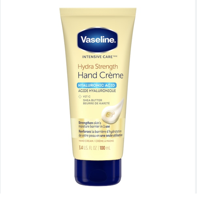 - FOR BEAUTIFULLY HYDRATED HANDS: Vaseline Intensive Care Hydra Strength Hand Cream is made with hyaluronic acid, vitamin C and shea butter