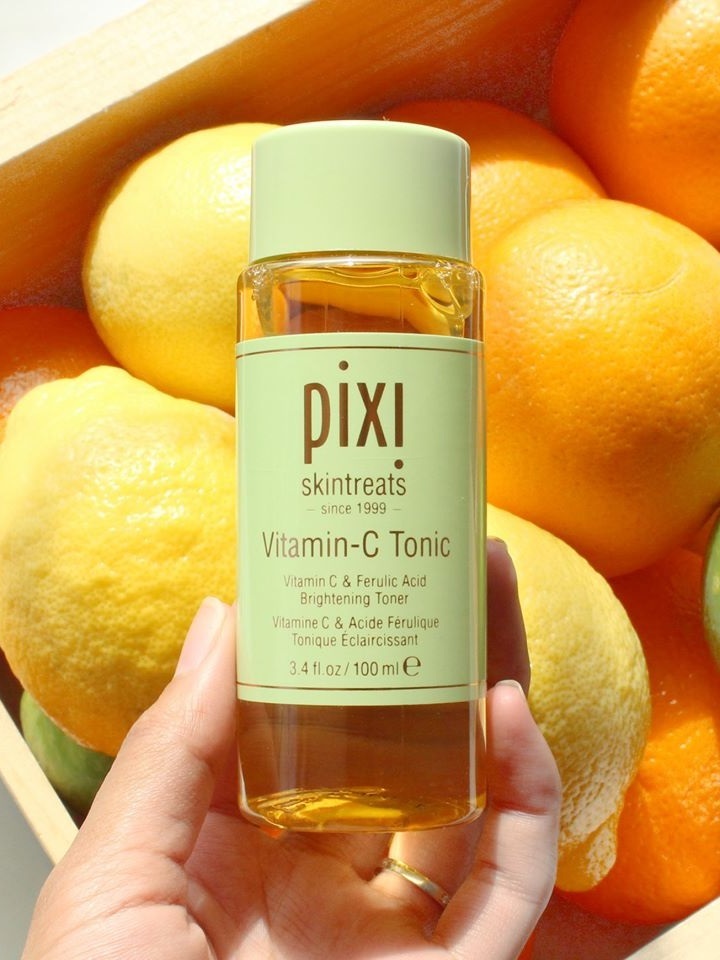 This Vitamin-C Tonic helps create a smooth and vibrant complexion while it preps your skin for the rest of your Pixi-perfect skincare routine. We carefully picked out skin-loving ingredients to provide you with a fast, easy and no-fuss way to reap all the brightening benefits with daily use.Use the Vitamin-C Toner daily or as needed to soothe and brighten your skin.• Rich antioxidants give your skin a healthy glow.• Fortifies your skin’s natural barrier through the use of Probiotics.• Skin damage caused by the sun is reduced due to Vitamin-C and Ferulic Acid.• Helps give you a smoother complexion and more even skin tone.• Gently exfoliates your face with Willow Bark and Fruit Extracts.• Aloe Vera Extract provides soothing hydration.• Formulated using Orange, Lemon and Grapefruit Extracts.• Can be used on all skin types• Alcohol-free formula• Not tested on animals• Volume: 100 milliliters (3.4 fluid ounces)HOW TO USEUse daily after cleansing.INGREDIENTSAquaWaterEau, Citrus Grandis (Grapefruit) Water, Propanediol, Glycerin, Aloe Barbadensis Leaf Juice, Ascorbic Acid, Citrus Limon (Lemon) Peel Extract, Citrus Grandis (Grapefruit) Fruit Extract, Citrus Nobilis (Mandarin Orange) Fruit Extract, Citrus Aurantium Dulcis (Orange) Peel Extract, Camellia Sinensis Leaf Extract, Daucus Carota Sativa (Carrot) Root Extract, Beta-Carotene, Ferulic Acid, Tocopherol, Calophyllum Inophyllum Seed Oil, Mentha Piperita (Peppermint) Extract, Microcitrus Australis Fruit Extract, Microcitrus Australasica Fruit Extract, Citrus Glauca Fruit Extract, Caffeine, Sodium Hyaluronate, LeuconostocRadish Root Ferment Filtrate, Melaleuca Alternifolia (Tea Tree) FlowerLeafStem Extract, Citrus Junos Peel Extract, CaprylicCapric Triglyceride, Glycine Soja (Soybean) Oil, Phospholipids, PEG-40 Hydrogenated Castor Oil, Sodium Benzoate, Potassium Sorbate, Citric Acid, Disodium EDTA, Phenoxyethanol, Ethylhexylglycerin, Sodium Citrate, Sodium Hydroxide
