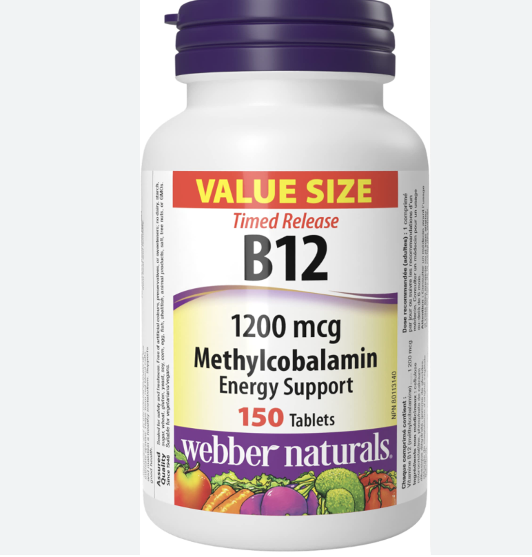Webber Naturals Vitamin B12 1200 mcg, Timed Release, 150 Tablets, Supports Energy Production and Metabolism, Vegan