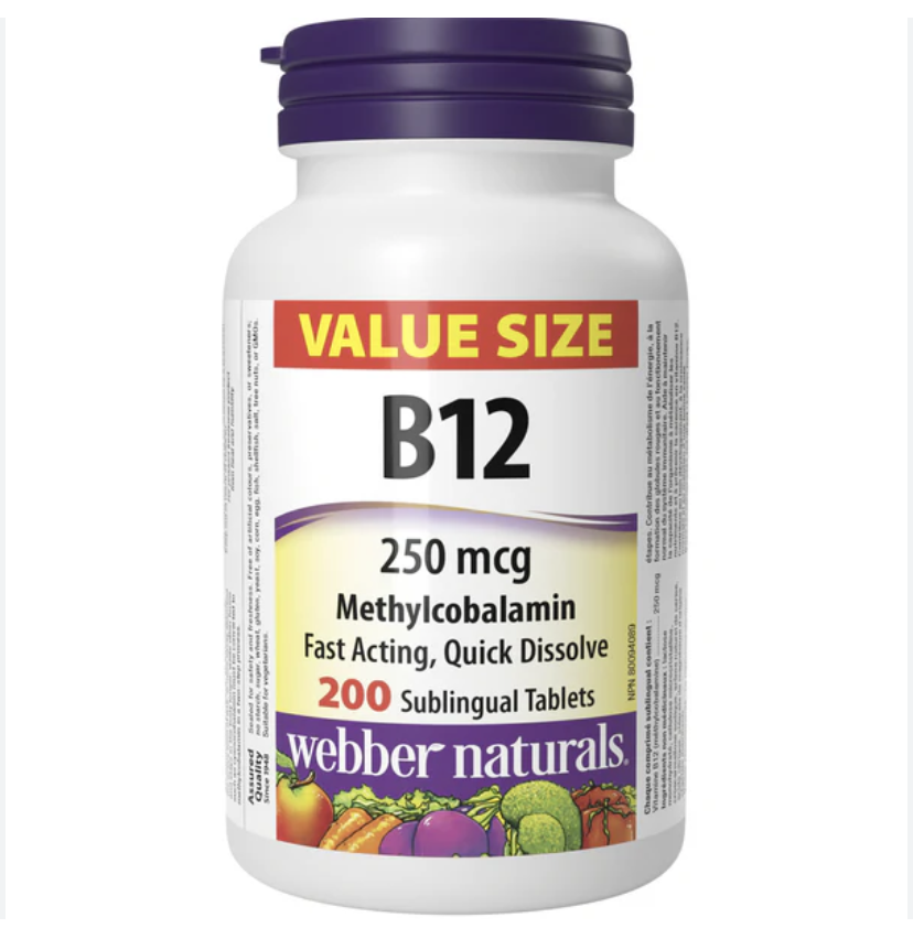 Webber Naturals Vitamin B12 250 mcg, Quick Dissolve, 200 Tablets, Natural Cherry Flavour, Supports Energy Production and Metabolism – canada