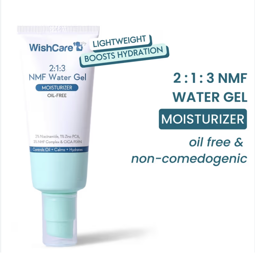 Wishcare 2:1:3 NMF Water Gel Moisturizer for Oily & Sensitive Skin, Oil-Free 50mlWishCare 2:1:3 NMF Water Gel Moisturizer is a lightweight, oil-free formula suitable for all skin types, designed to provide long-lasting hydration without greasiness. Powered with 2% Niacinamide to refine pores and even skin tone, 1% Zinc PCA to control excess sebum, and a 3% Natural Moisturizing Factors (NMF) blend to boost moisture, it keeps skin soft, balanced and refreshed. Enriched with CICA PDRN and Panthenol, it soothes and strengthens the skin barrier, while its fast-absorbing, non-sticky texture ensures comfort all day long. Perfect for both morning and nighttime routines, this moisturizer leaves your skin looking healthy, clear and revitalized, making it a must-have for daily care.