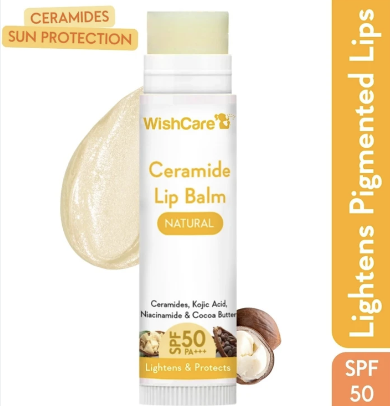 Wishcare Ceramide Lip Balm With SPF 50 PA+++ Kojic Acid & Niacinamide For Lip Lightening Natural- SPF 50, PA+++ WITH CERAMIDE PROTECTION : WishCare Ceramide Lip Balm with SPF is uniquely formulated with broad-spectrum SPF 50 protection, shielding your lips from harmful UVA and UVB rays. At the same time ceramide locks in moisture and gives you healthy lips