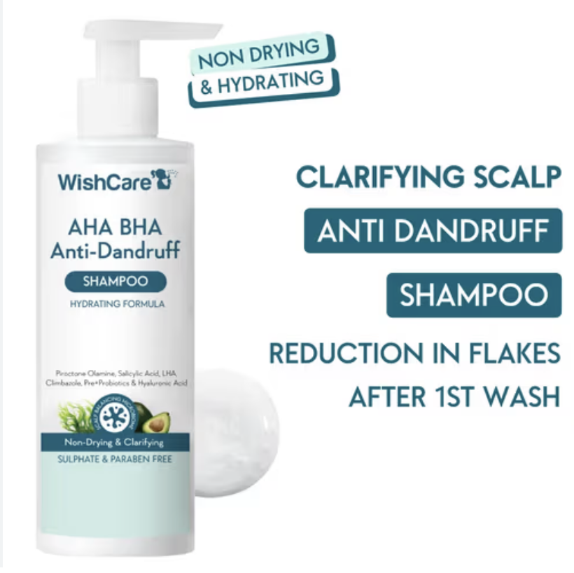 • NTI-DANDRUFF SHAMPOO : Wishcare AHA BHA Anti Dandruff Shampoo is formulated with Piroctone Olamine and Climbazole to target the root causes of dandruff, reducing flakes and itchiness for a healthier scalp.