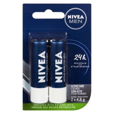NIVEA MEN Active Care Lip Balm (2 x 4.8g) | Jojoba Oil & Shea Butter | 24-Hour Hydration for Dry Lips