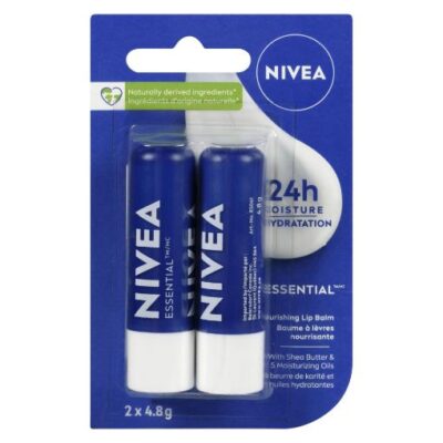NIVEA Lip Care Essential, (2 X 4.8g) | Made with Jojoba Oil & Shea Butter, 24H Hydration, Transparent