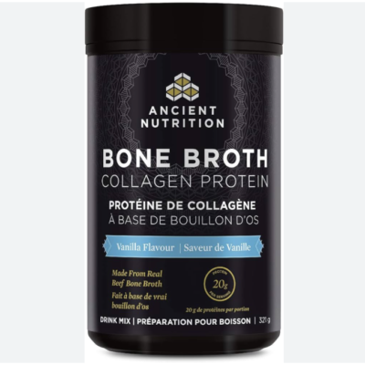 Ancient Nutrition Bone Broth Collagen Protein – Vanilla, Formulated by Dr. Josh Axe, Collagen Peptides, Supports Joints, Skin and Nails, Made Without Added Sugar, Gluten & Dairy, 321 Grams –